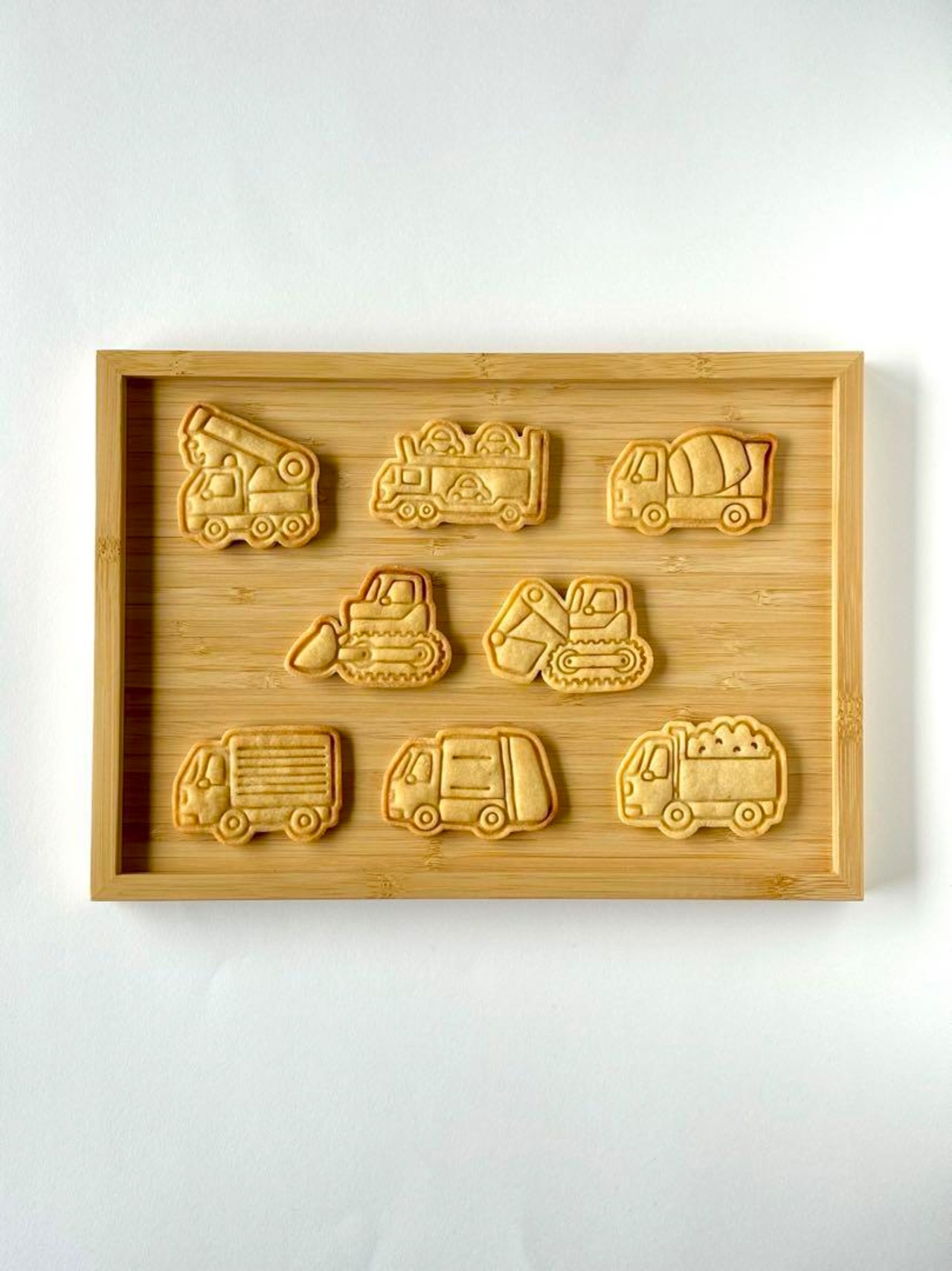 このクッキー型でクッキーを焼くだけでとっても可愛い乗り物クッキーが作れるので