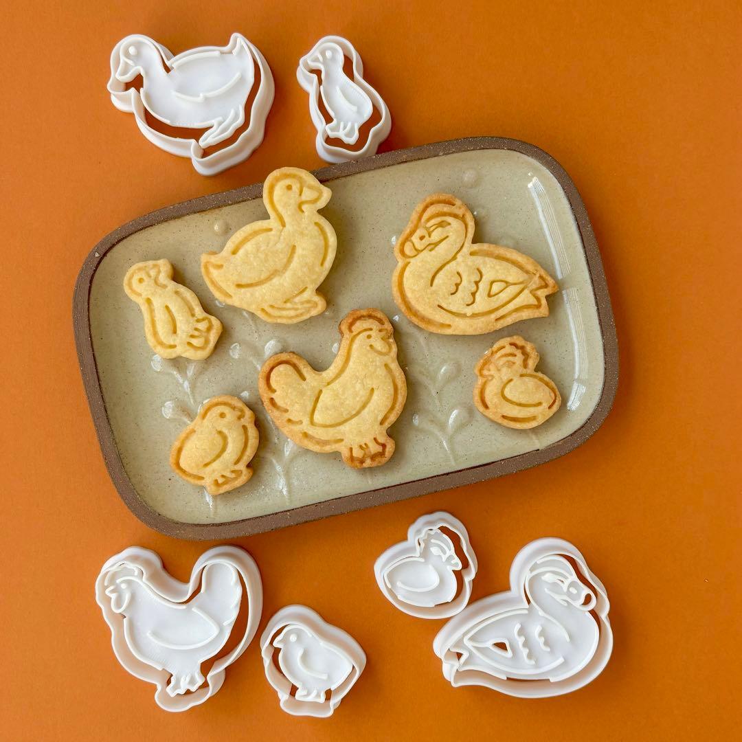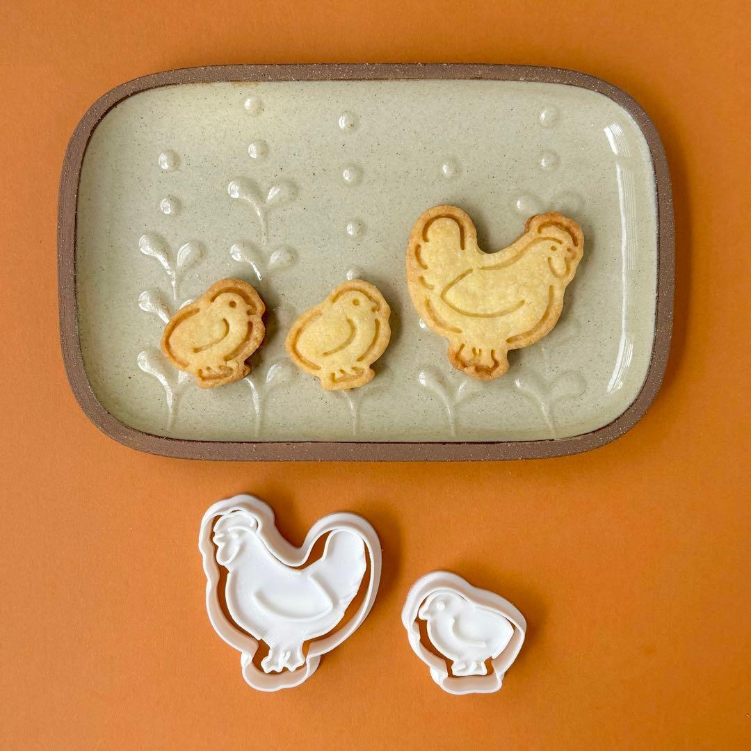 【朝の食卓に彩りを♪】仲良しニワトリの親子 クッキー型セット(スタンプ付き)