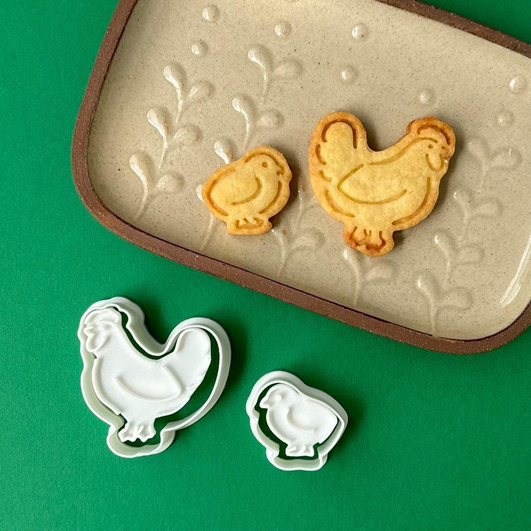 コケコッコー!と元気な声が聞こえてきそうな「ニワトリの親子」のクッキー型セットです。