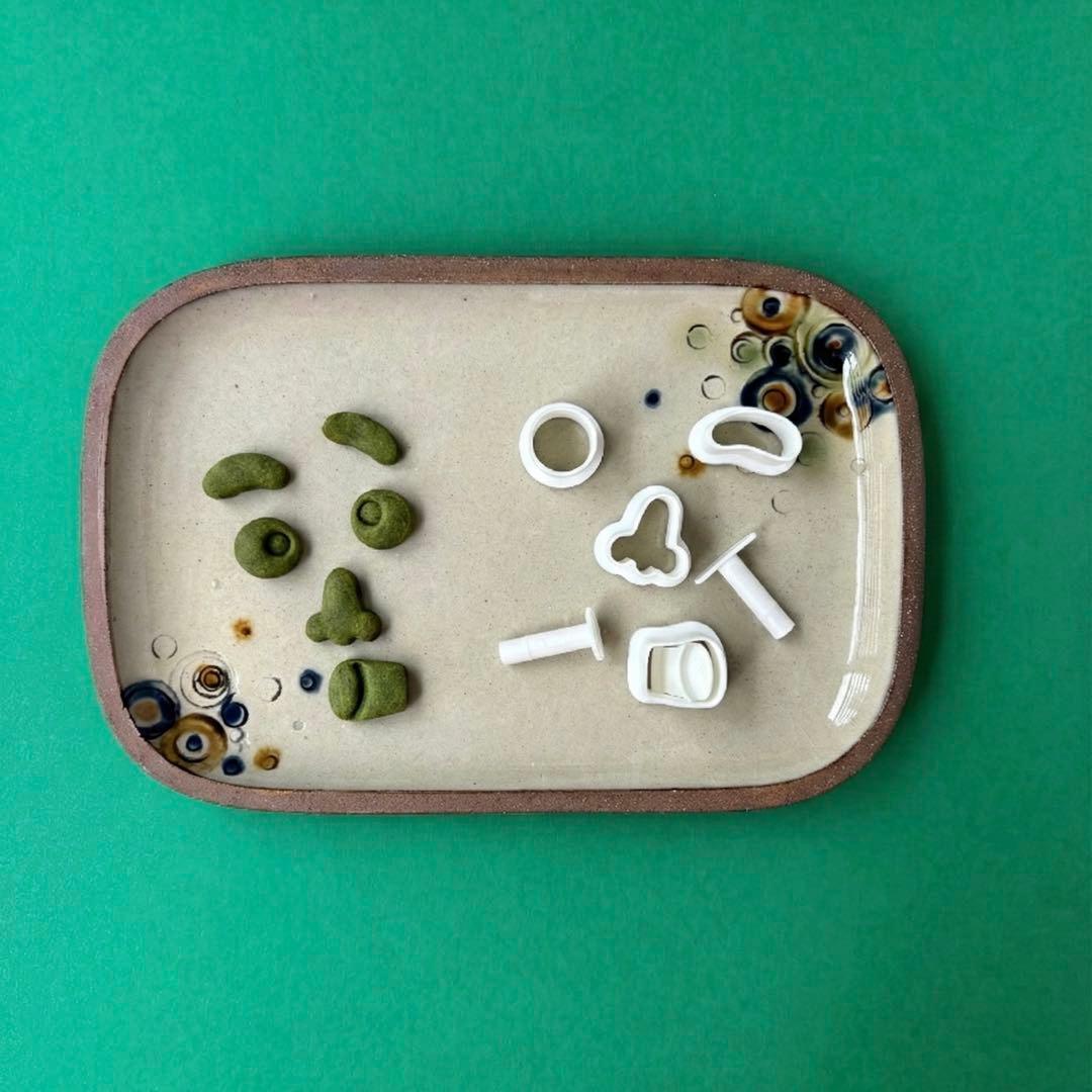 ⚠︎目のパーツは型抜きした後、押し出しスタンプの取手部分で黒目の模様をつけてください。