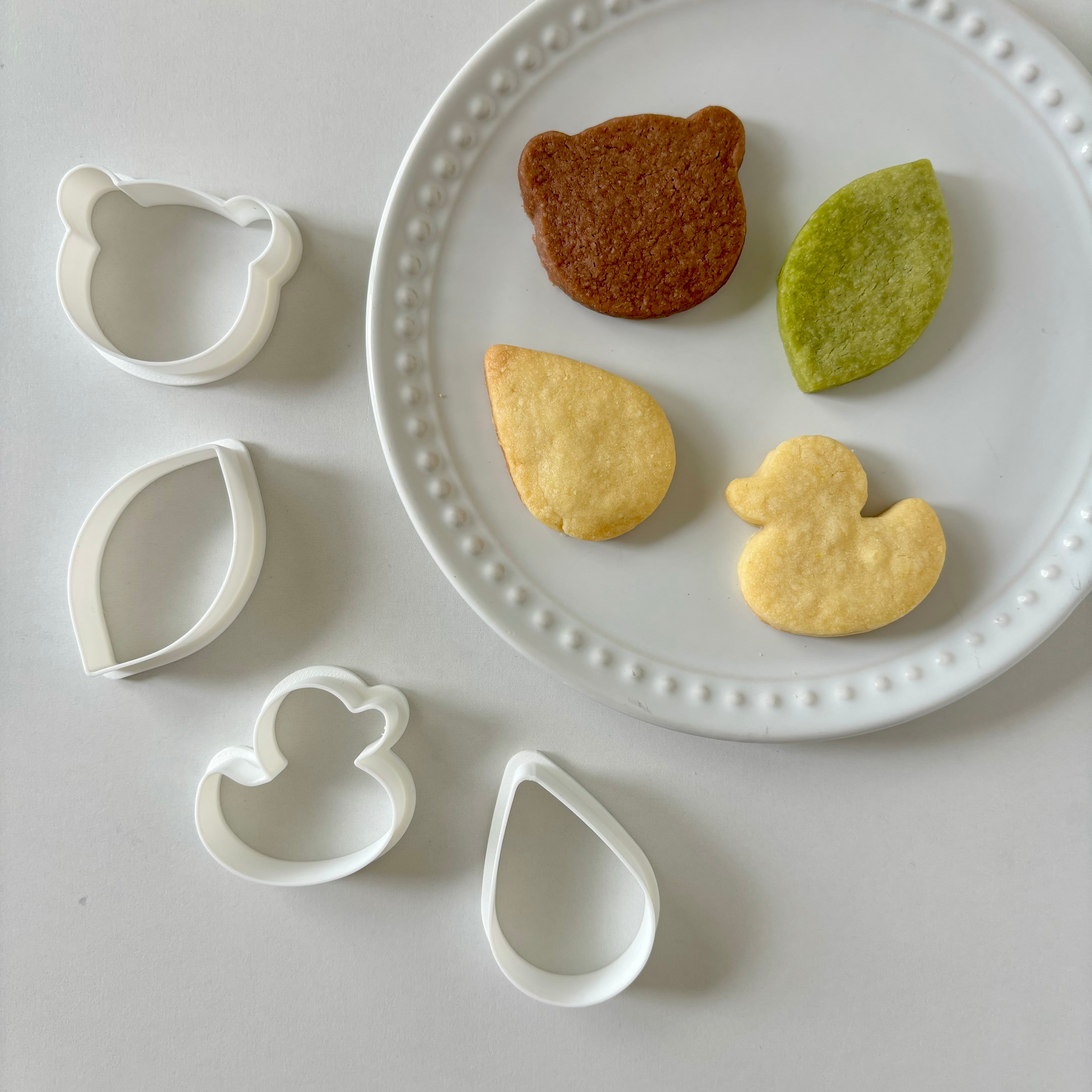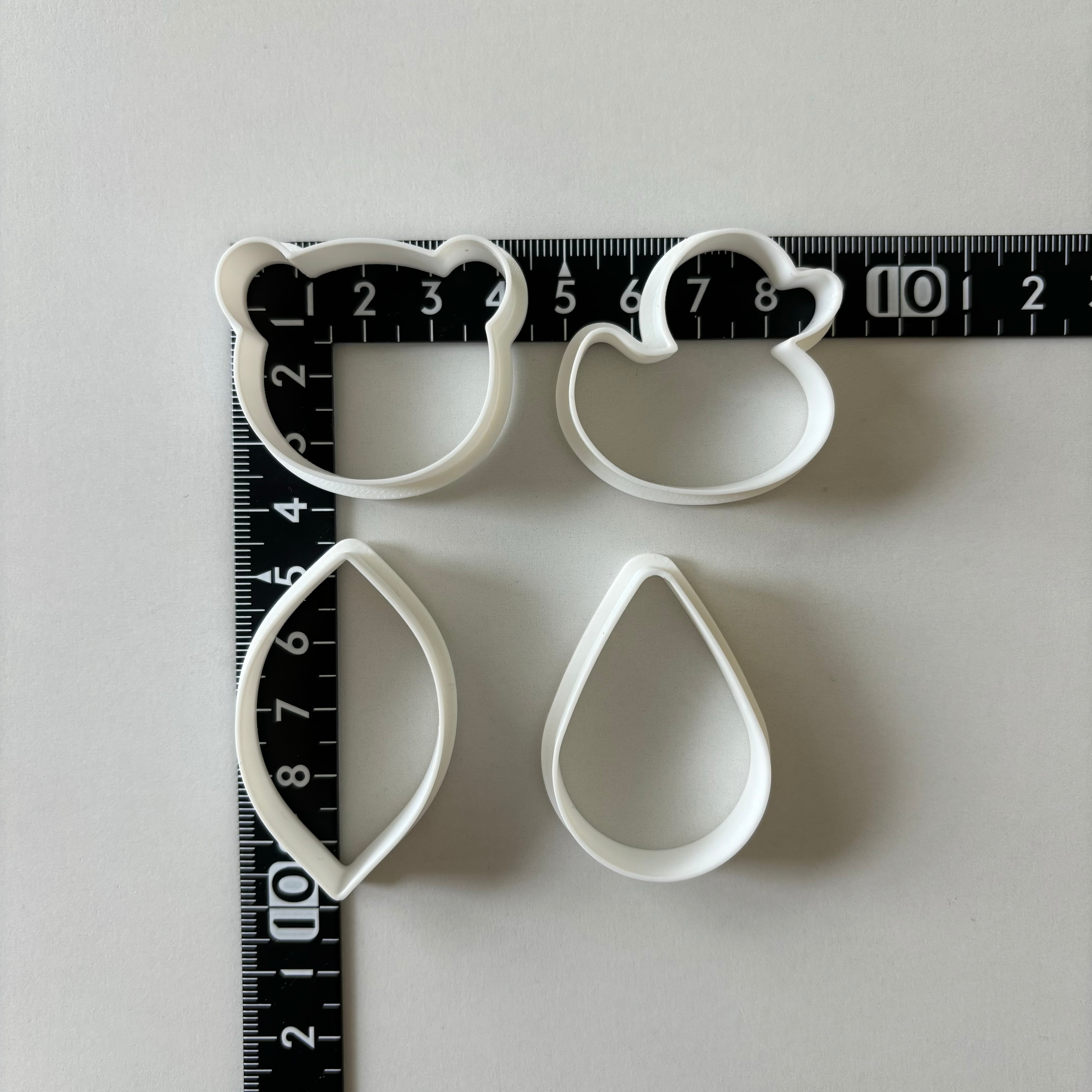 シンプルな くま・葉っぱ・アヒル・しずく のクッキー型です。